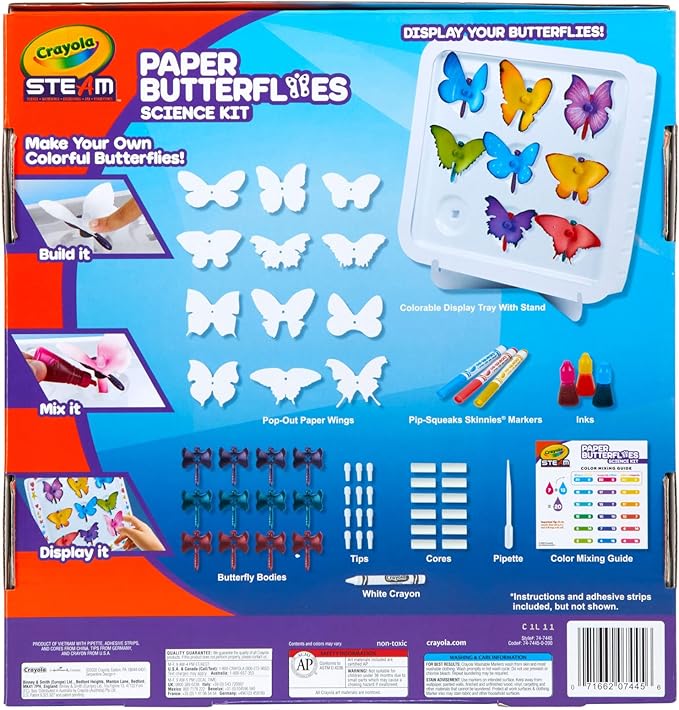 - KIDS CRAFT KIT: This science kit features everything needed to make 12 Wicking Paper Butterflies, as well as a guide with step-by-step instructions.