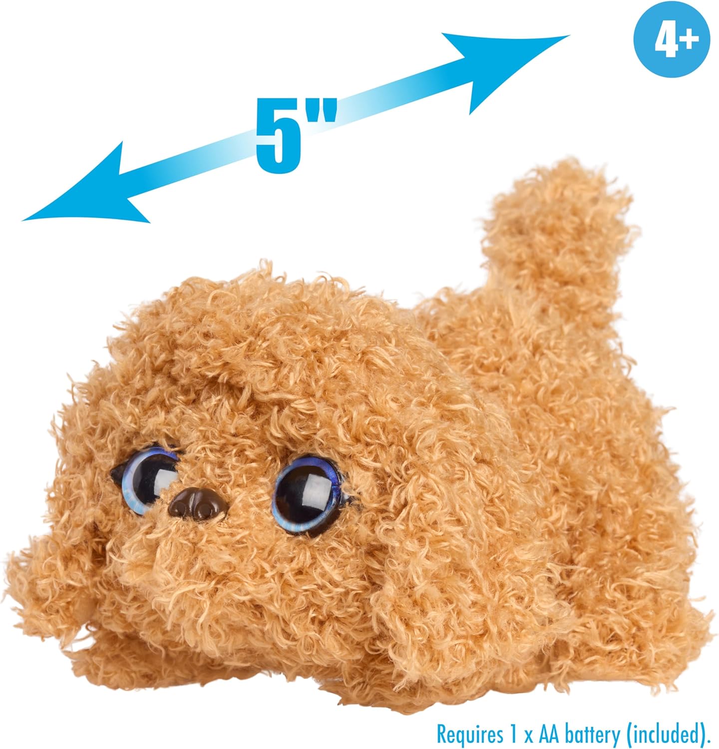 - The Cutest Pup: This cuddly golden doodle puppy interactive kids’ toy is 5 inches long, and features super-soft fur, sparkly blue eyes, and loads of pretend play animal fun.