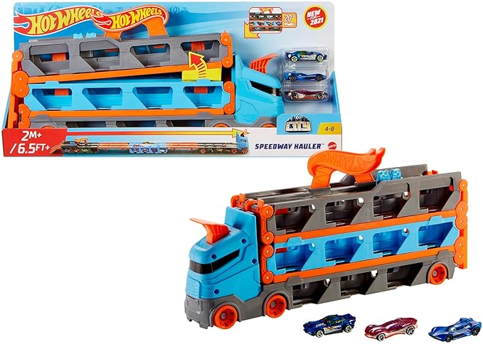 • The Hot Wheels Speedway Hauler is the ultimate all-in-one Hot Wheels package with so many features and so many ways to play!