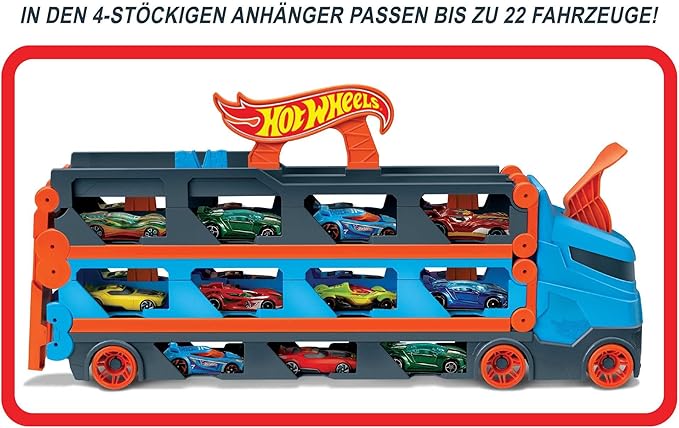 • The Hot Wheels transporter vehicle comes with 3 Hot Wheels cars and space to haul more than 20 (additional cars sold separately).