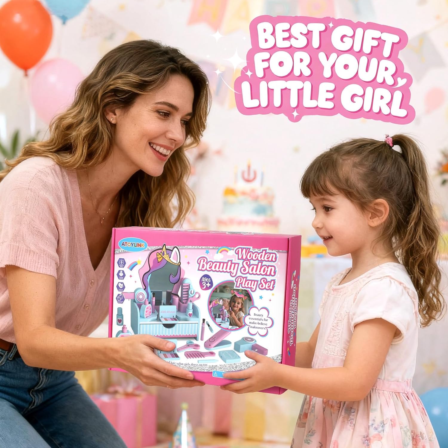 - Unicorn-Themed Wooden Design: Made with natural wood and sprinkled with unicorn magic, plus soft, pretty colors—this set is like a little piece of fairy-tale that makes every girl feel like a real princess! The edges are all rounded and smooth, so it’s super cute and totally safe for little hands